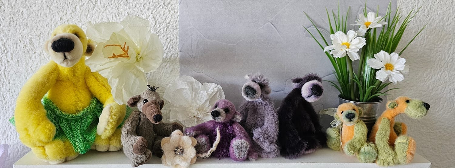Seit über 25 Jahren widme ich mich der Kunst des Bärenmachens: aus edlen Stoffen wie Mohair, Alpaka oder feinem Plüsch entstehen farbenfrohe, freche und manchmal auch nachdenkliche Wegbegleiter.
